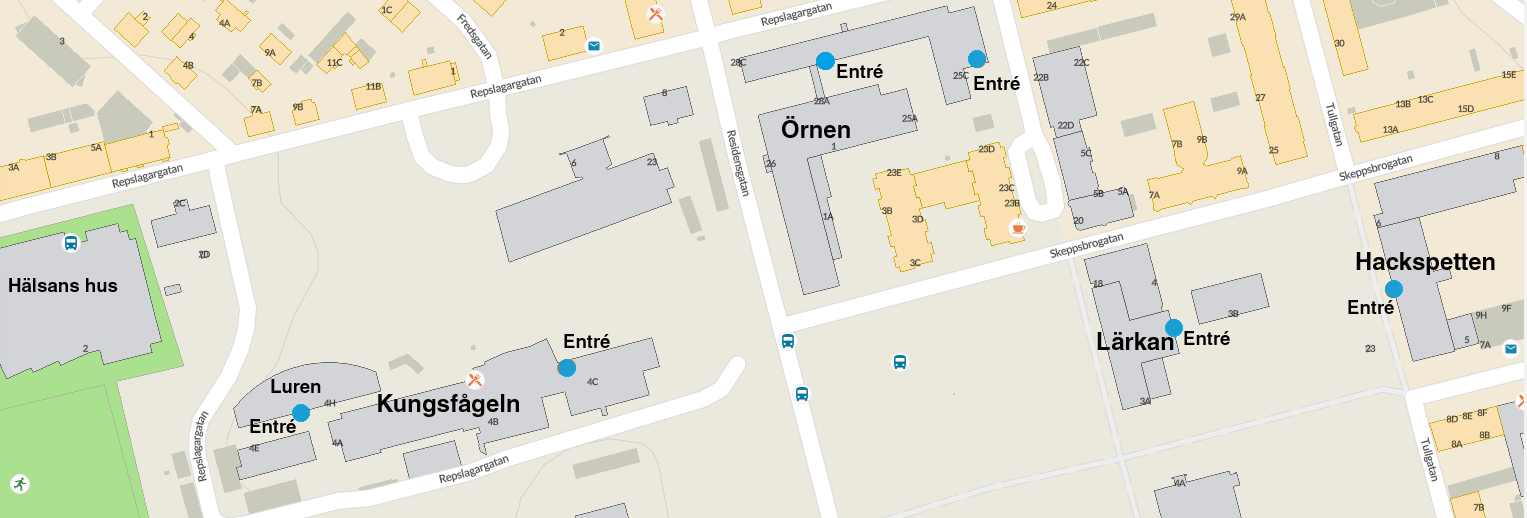 Kvarteret Kungsfågeln: Repslagargatan 4 (Ingång vid elevmatsalen eller "Luren")